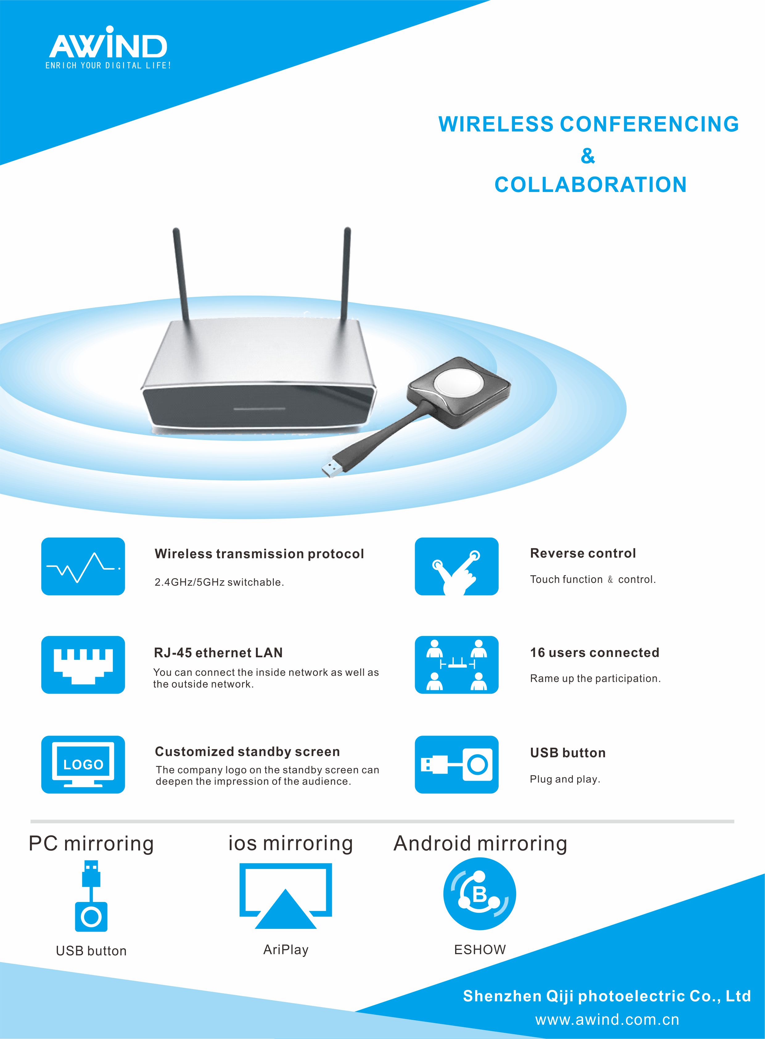 Awind wireless HD projection USB one button projection Android Apple mobile phone projection airplay screen image co screen device