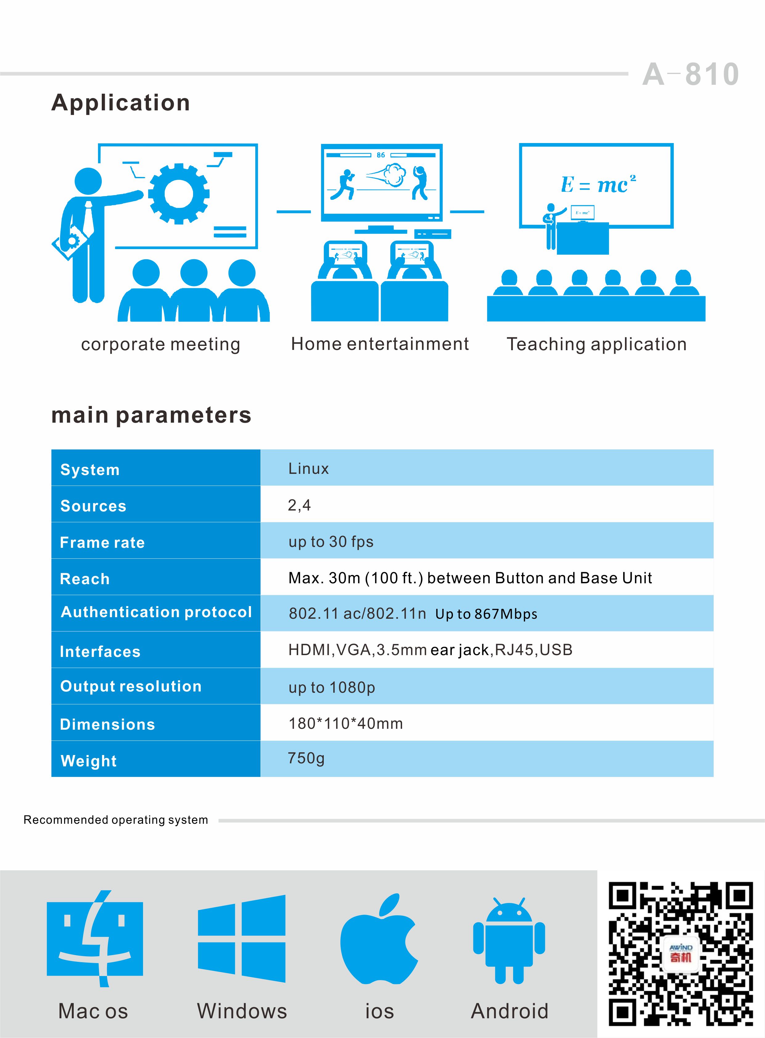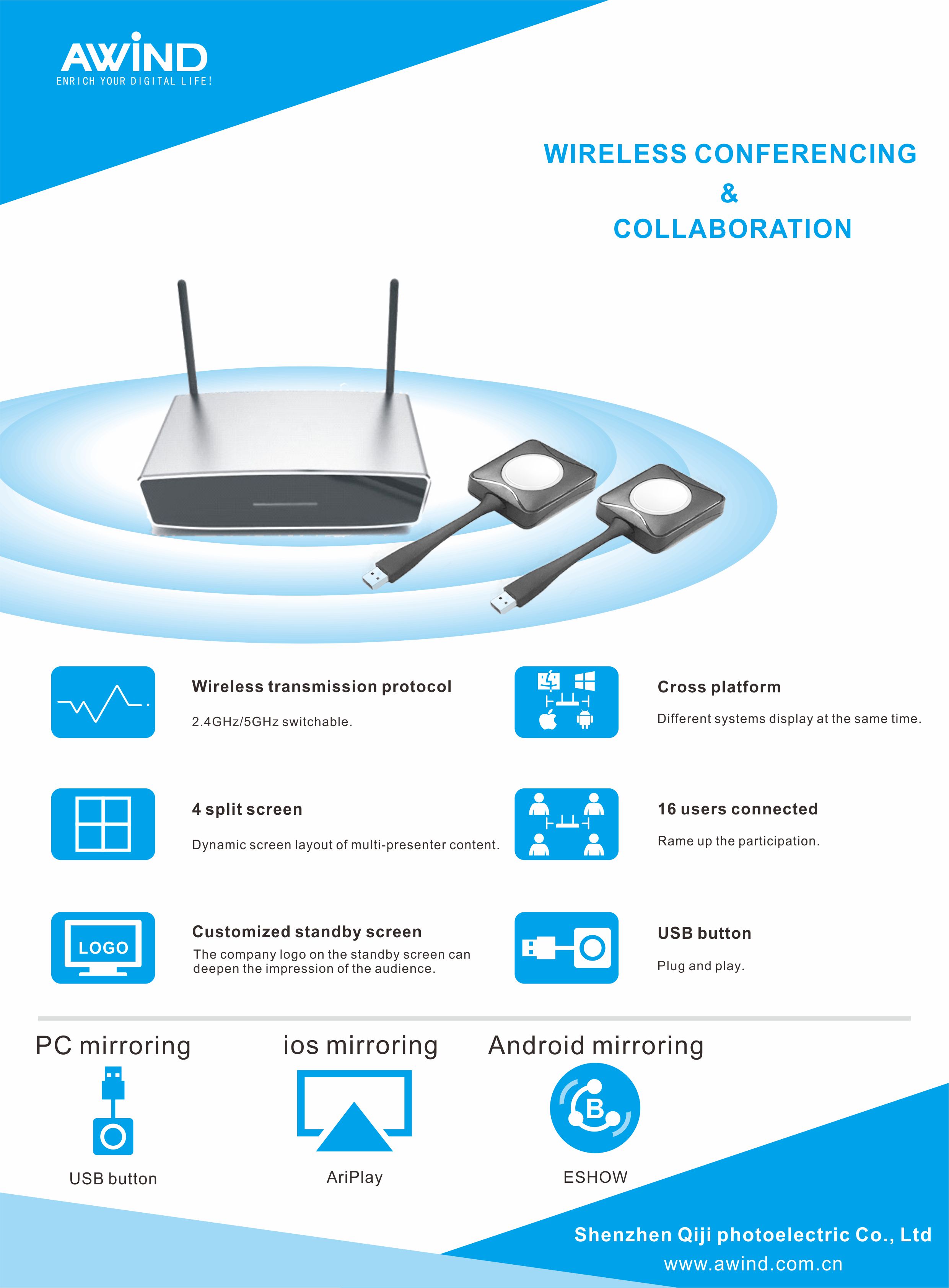 Awind wireless projection gateway a-810 wireless conference collaboration one key projection computer mobile phone wireless projection multi screen interactive airplay screen image co screen device