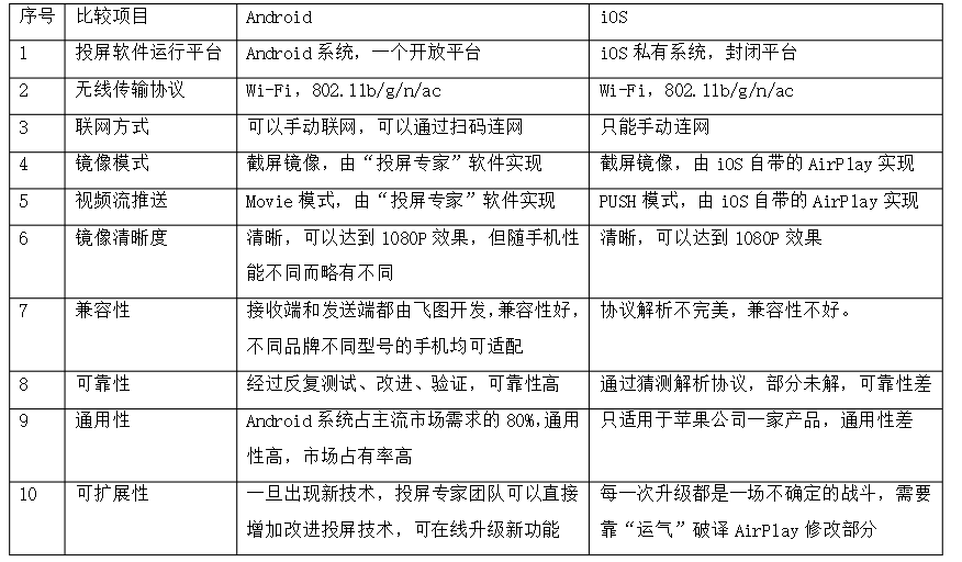 安卓手機投屏與蘋果手機投屏的區別,歸根到底還是Miracast協議和AirPlay協議之間的區別。