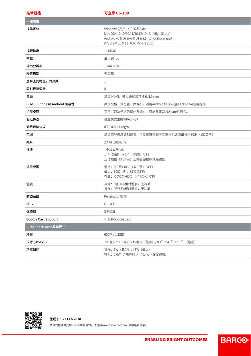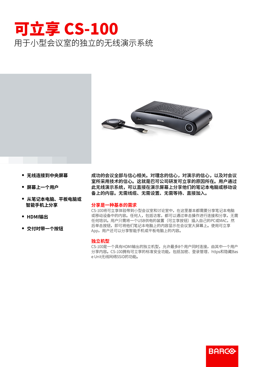 巴可BARCO Clickshare可立享CS-100無(wú)線演示協(xié)作系統(tǒng)