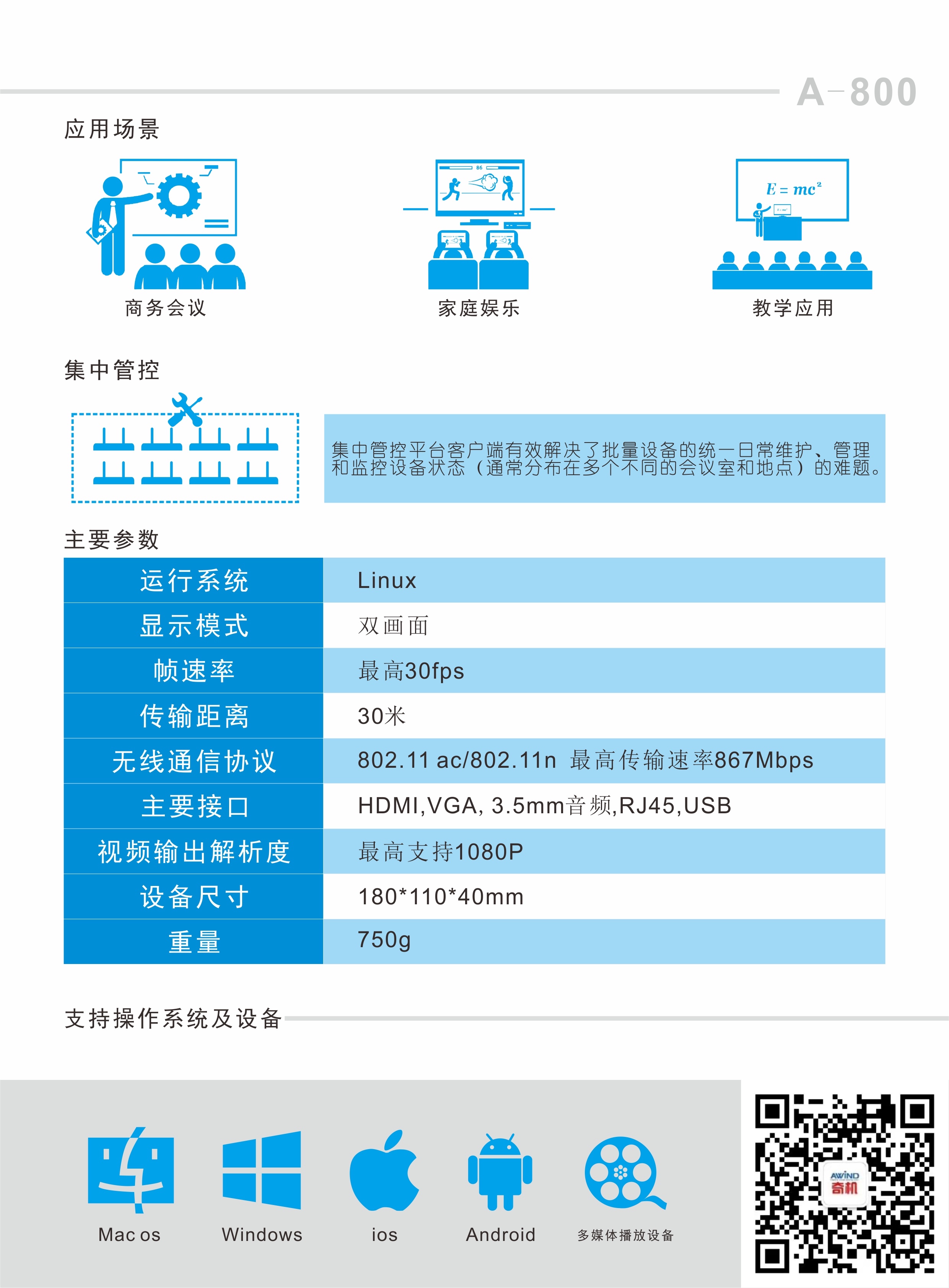 操作系統 | Windows 7/8.1/10 32和64位 MAC OS X 10.10/10.11/10.12及以上 支持智能手機無線投屏 兼容airplay功能,推薦使用iOS9/iOS10/iOS11,OS X 10.10/10.11/10.12及以上 Android 5.0和更高版本(需安裝APP) |