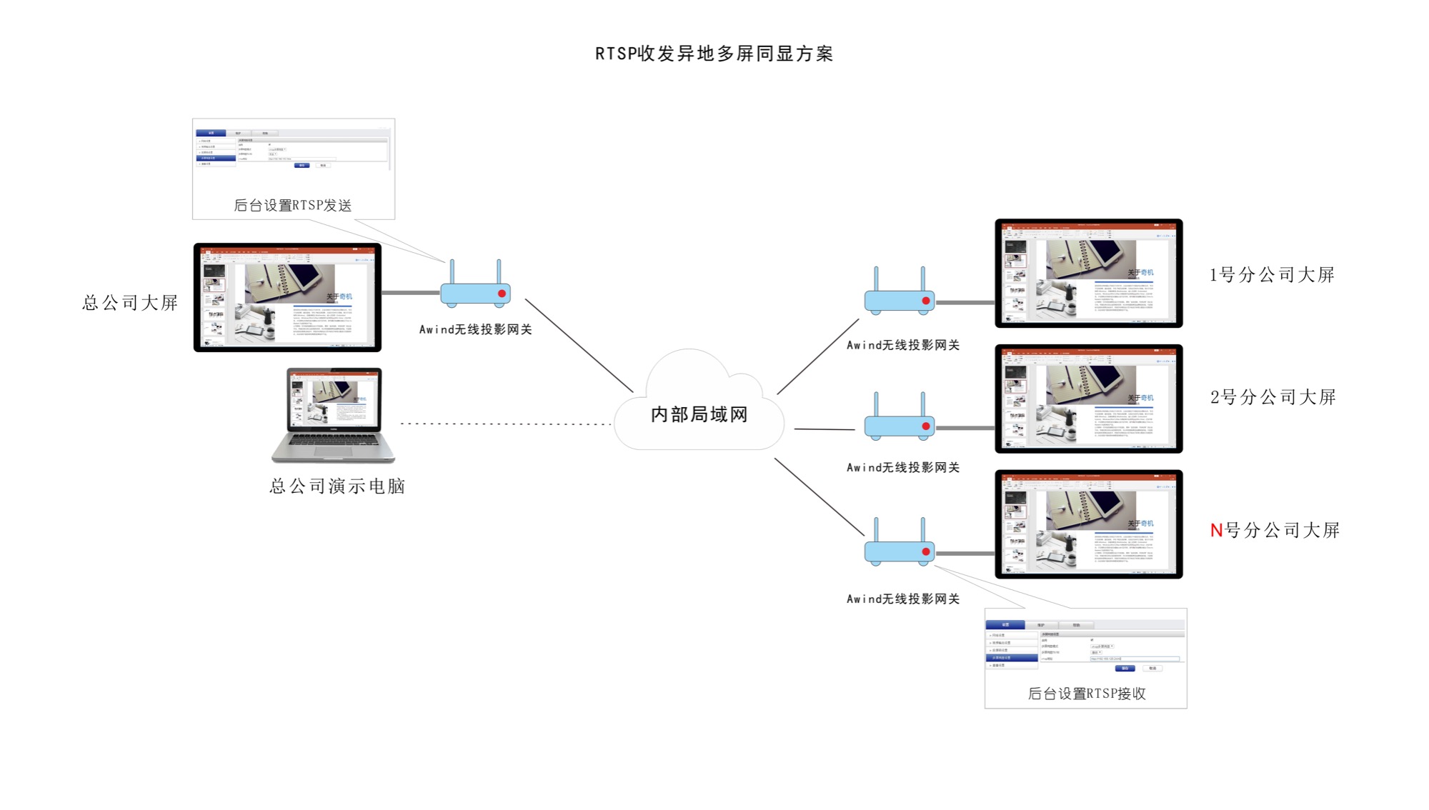 5. 各分部的AWIND無線投影網關通過HDMI接入各分公司的大屏;